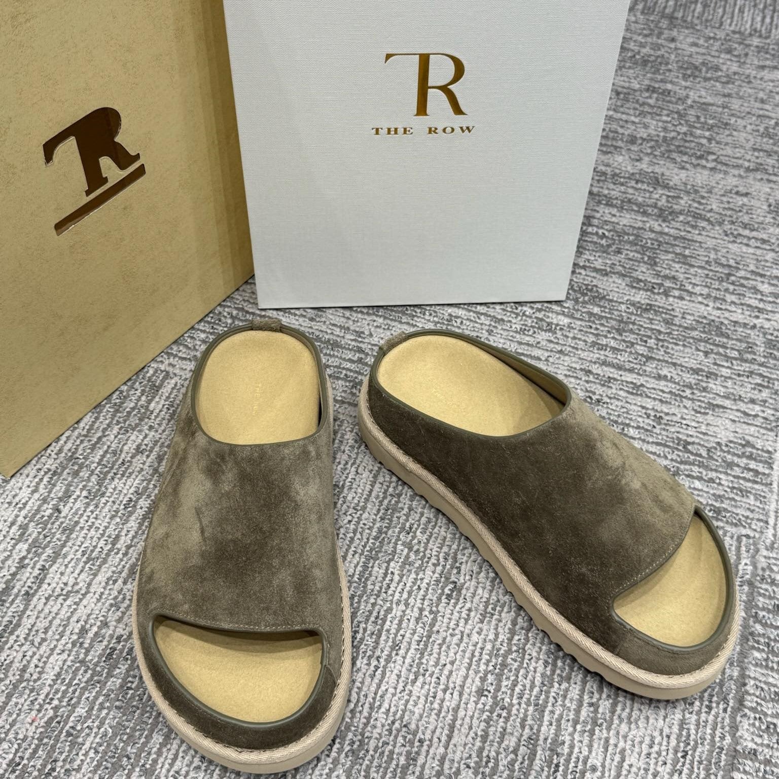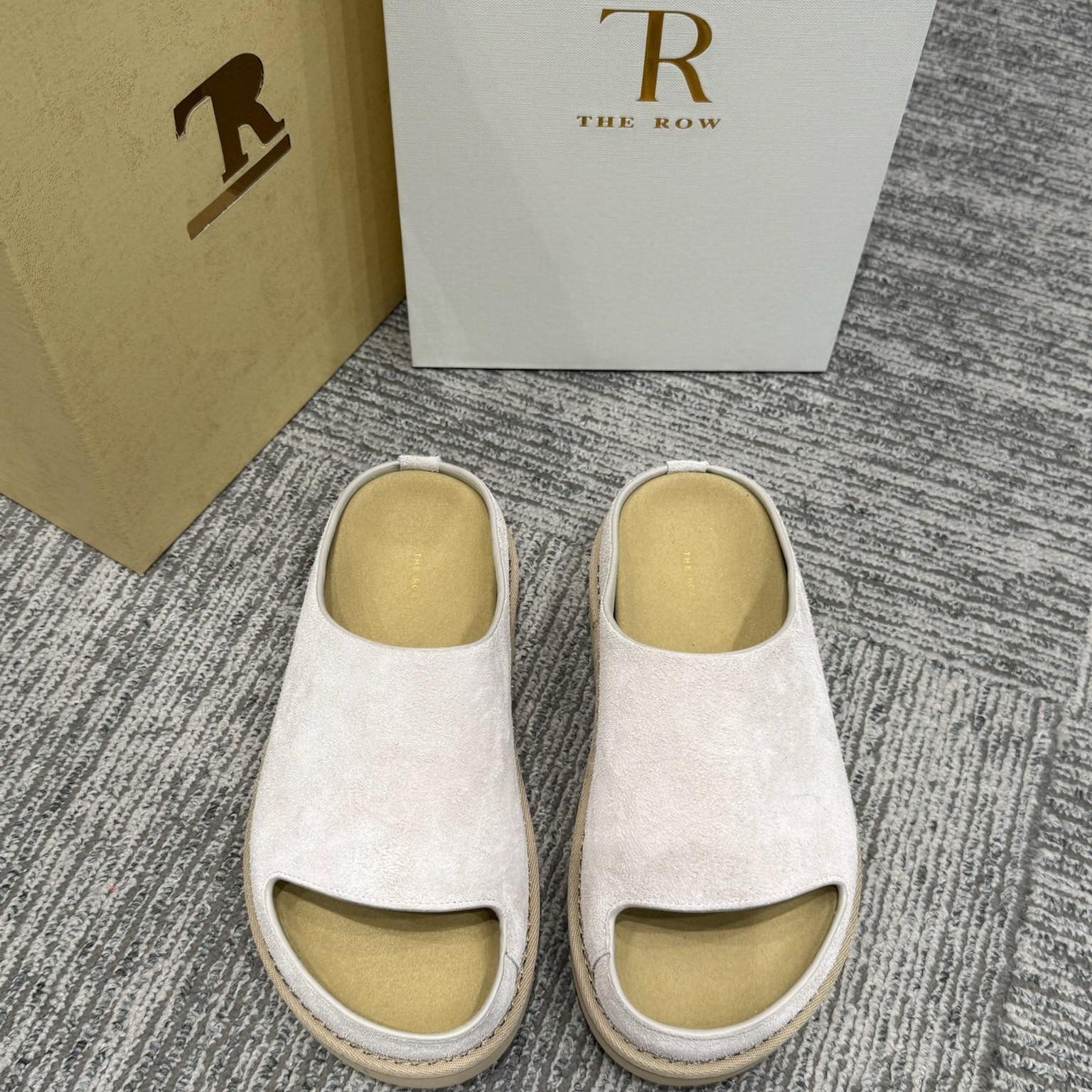 The Row Slide Mules Beige Cow Suede 334354