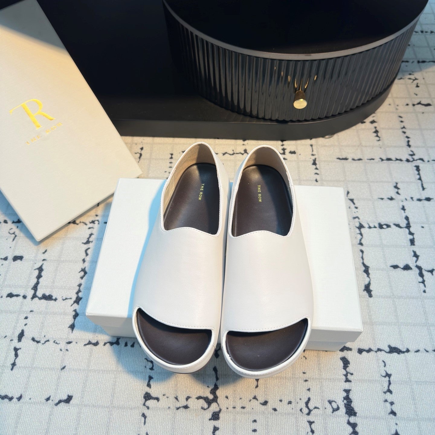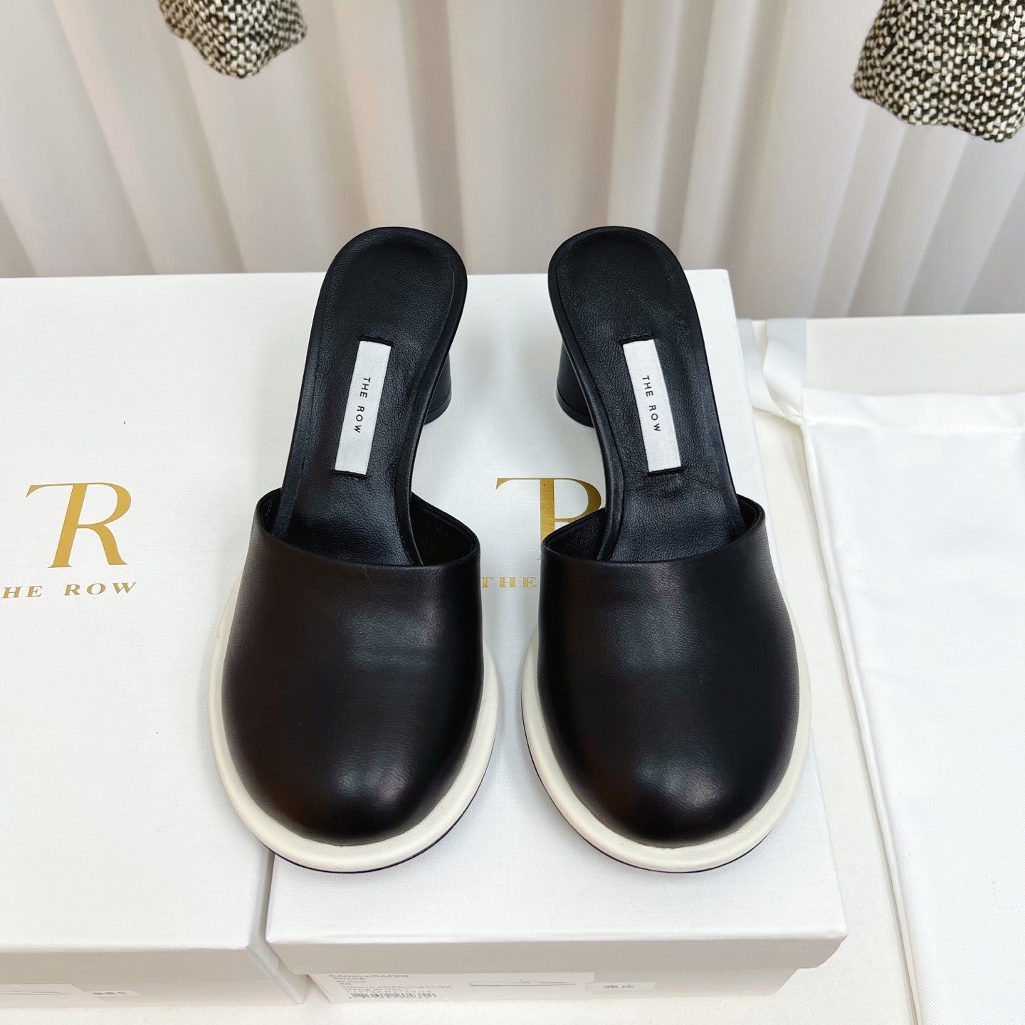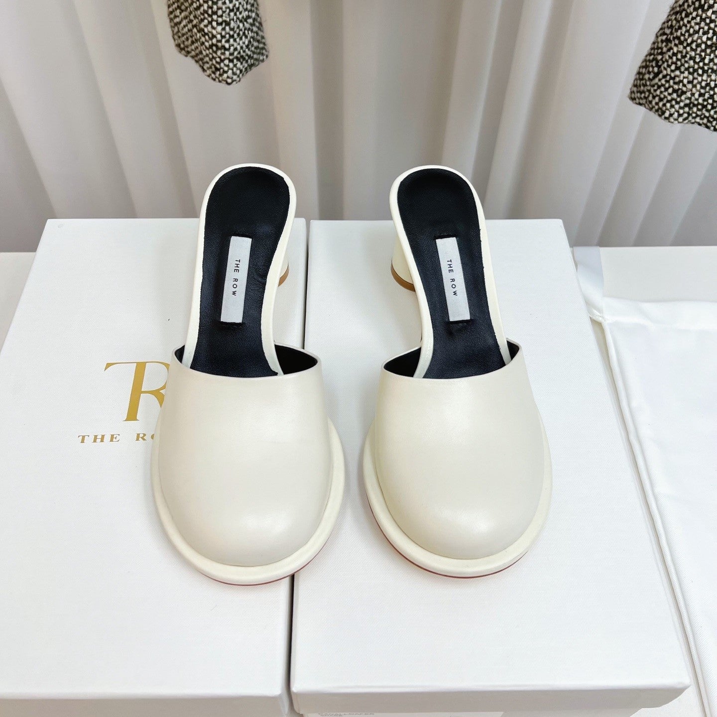 The Row Mules 50mm White Black Sheepskin 324740