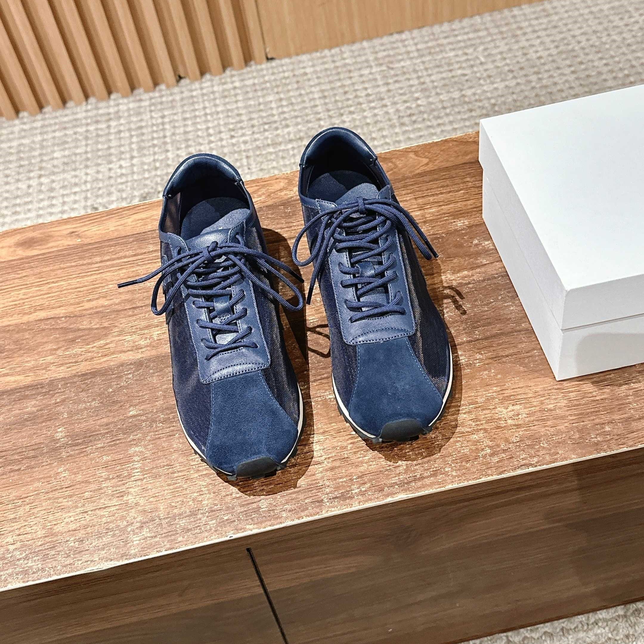The Row Sneakers Navy Blue Mesh And Cowhide 330593