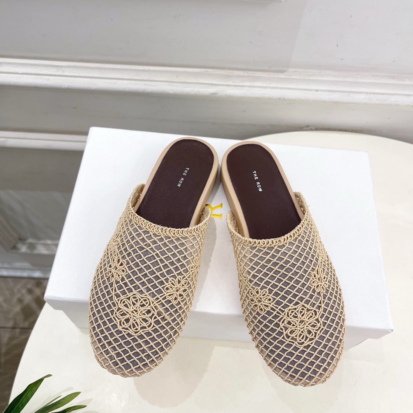 The Row Slingback Flat Beige Mesh And Sheepskin 334166