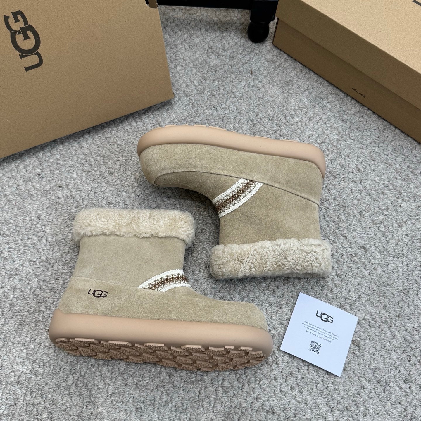 UGG 25ss Ankle Boots Taupe Sheep Fur Suede 523105