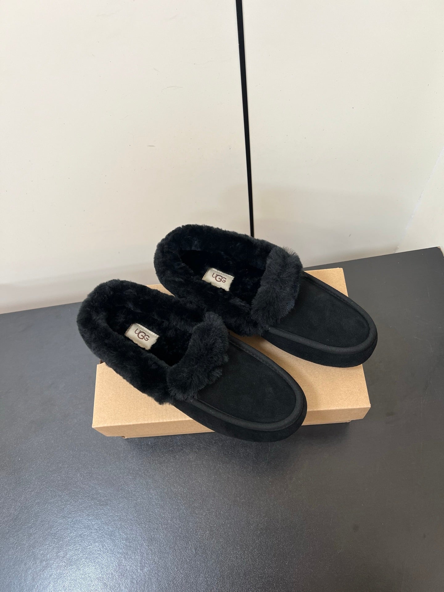 UGG Oil Jiji Slip-On Loafers Black Fur Suede 519525