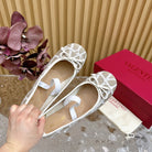 Ballerina In Toile Iconographe 20mm In White Mix Grey Brown Cotton Canvas And Lambskin 102830
