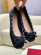 ROCKSTUD PATENT LEATHER BALLERINA IN BLACK SILK