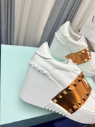 FLATFORM ROCKSTUD UNTITLED SNEAKER IN WHITE MIX COPPER BROWN CALFSKIN