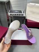 Heeled Sandals 6cm with Crystal Square Buckle Purple
