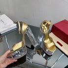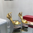 HIGH SANDAL 14CM IN GOLD CALFSKIN AND TRANSPARENT PVC