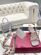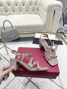 Rockstud 6cm Square Toe Rose Cannelle Leather Sandals