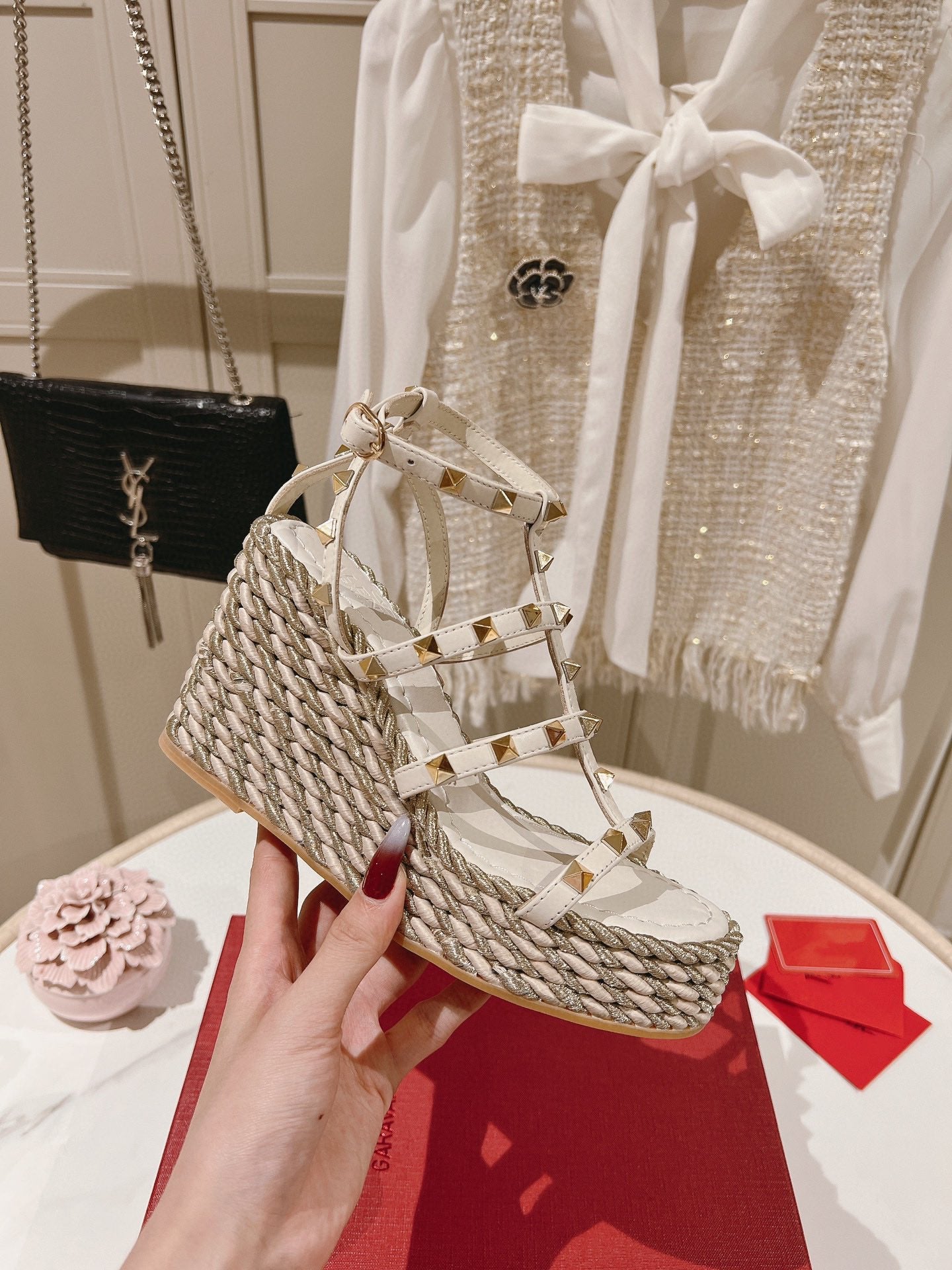 • Nylon rope wrapped wedge heel-10cm waterproof platform-3cm