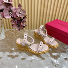 Rockstud Flatform Sandal 75mm In Rose Pink Calfskin And Raffia 102858