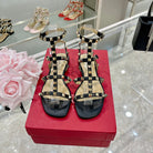 ROCKSTUD SANDAL WITH STRAPS IN BLACK CALFSKIN