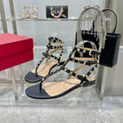 ROCKSTUD THONG SANDAL WITH STRAPS IN BLACK CALFSKIN