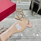 ROCKSTUD THONG SANDAL WITH STRAPS IN LIGHT PINK CALFSKIN