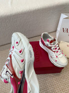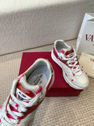 Valentino Sneaker 50mm In White Mix Red Pink Mesh Fabric And Cowhide 814276