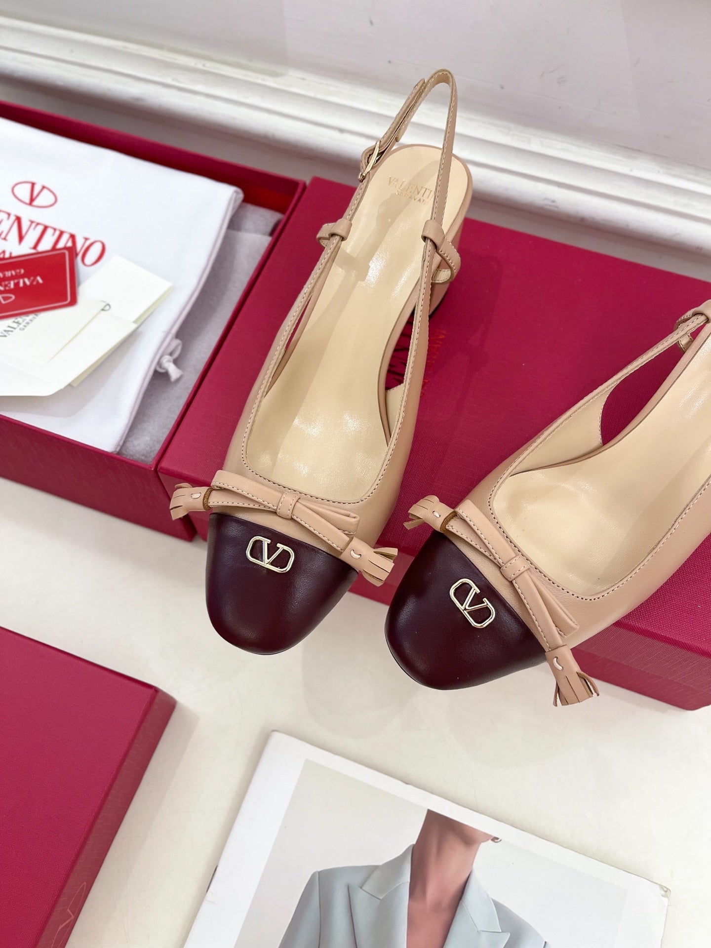 Valet Du Roi Slingback Pumps 60mm Beige Burgundy Goatskin 307480