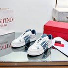 VL7N LOW-TOP WHITE CALFSKIN AND AEGEAN BLUE FABRIC SNEAKER WITH BANDS