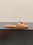 VLOGO CUT-OUT BRONZE BROWN CALFSKIN SLIDE SANDAL