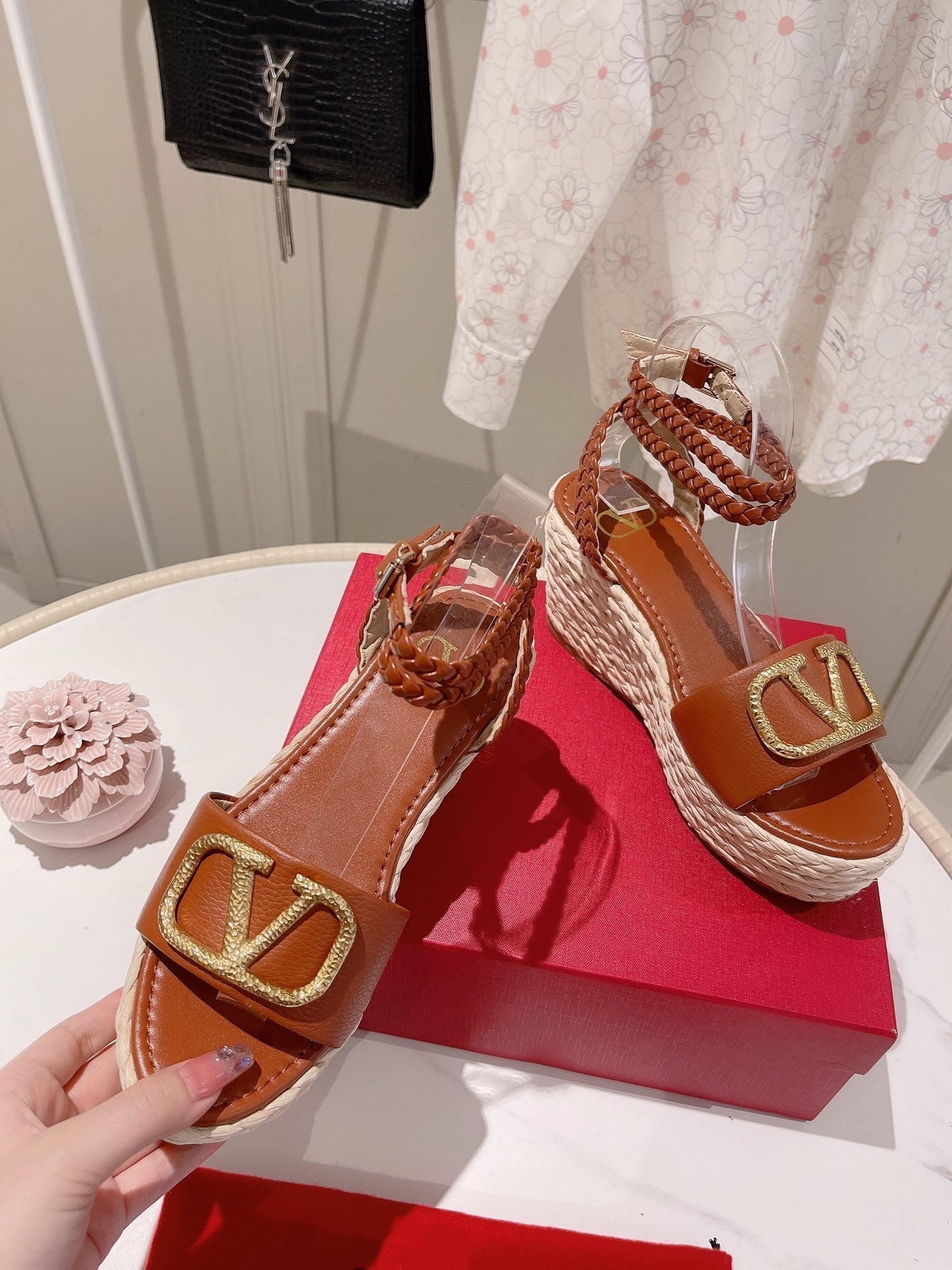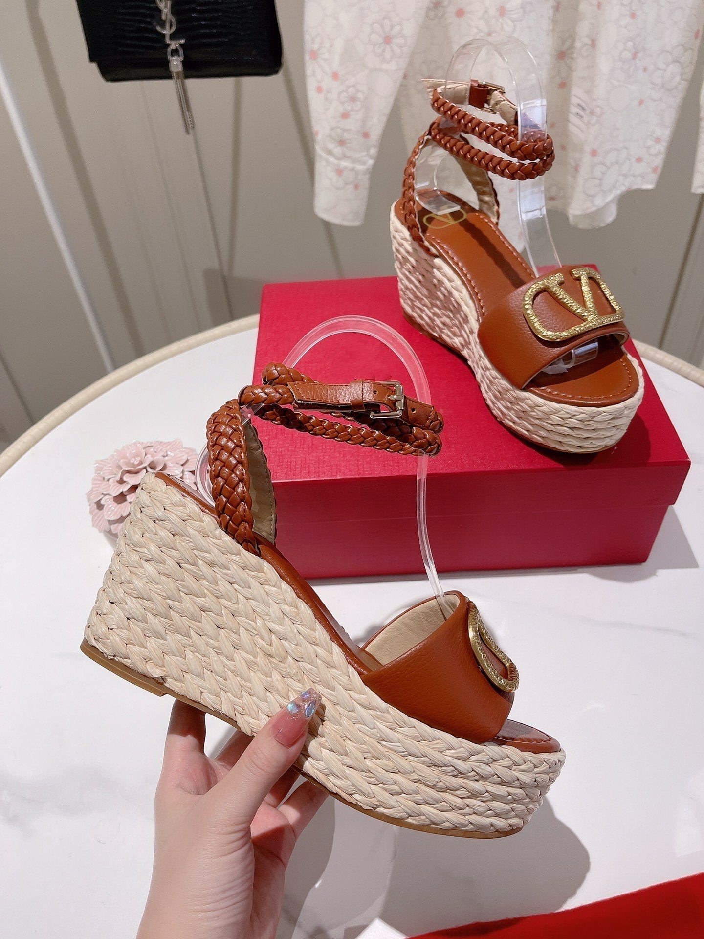 - Nylon rope wrapped wedge heel-10cm waterproof platform-3cm
