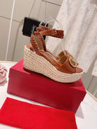 VLogo Signature Calfskin Wedge Sandal 90mm Burgundy