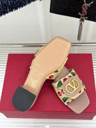 VT 25 Cherryfic Leather Trimmed Slides Nude Sheepskin 286503