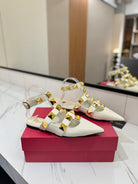 VT Rockstud Sandals Flat White Gold Cowhide