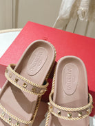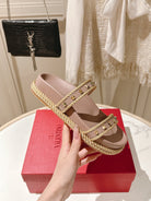 VT Rockstud Sandals Pink Nude Espadrilles Cowhide 328129