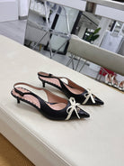 Bepointy Slingback Pumps Bow In Black Cowhide And Patent Leather Pale Pink Sheepskin Linning 304252