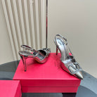 Vlogo Glow Laminated Nappa Leather Slingback Pump 100mm Dark Silver 999053