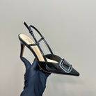 Vlogo Glow Laminated Nappa Leather Slingback Pump 80mm Black Mix Beige 999048