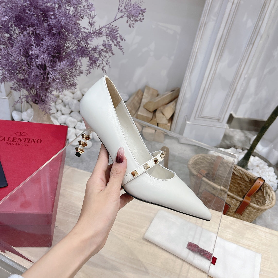 VT Rockstud Pumps White Sheepskin Leather