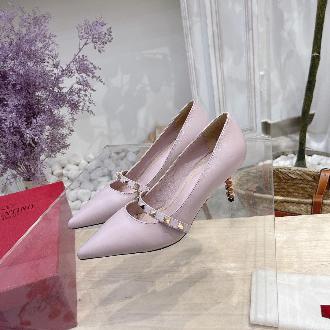 VT Rockstud Pumps Pink Sheepskin Leather
