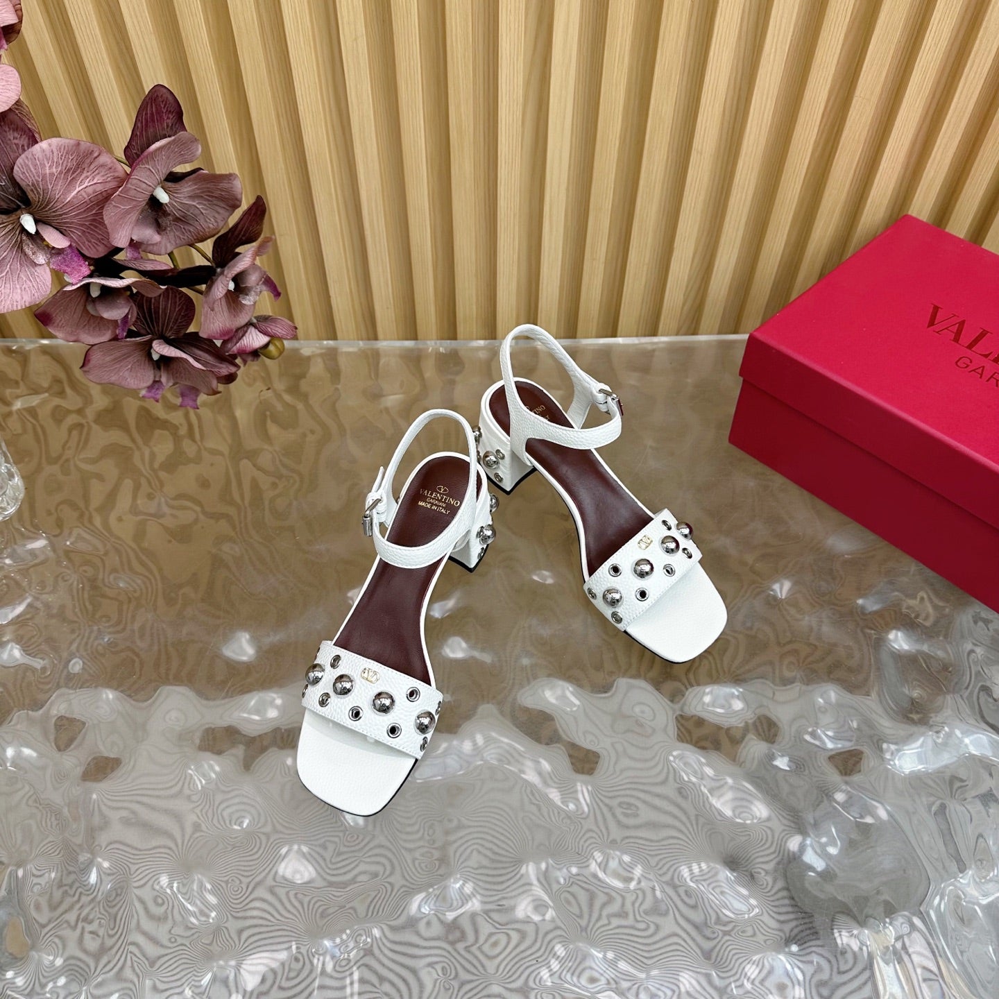 VT 25 Rivet Steel Beads Slingback White Lambskin 325204