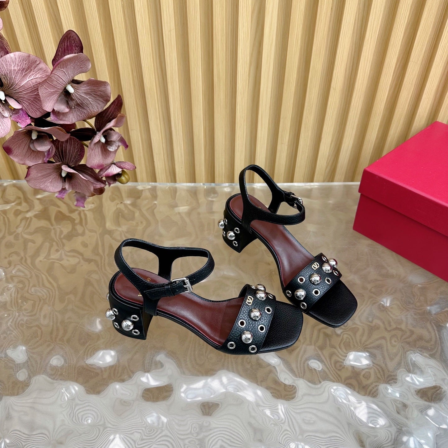 VT 25 Rivet Steel Beads Slingback Black Lambskin 325205