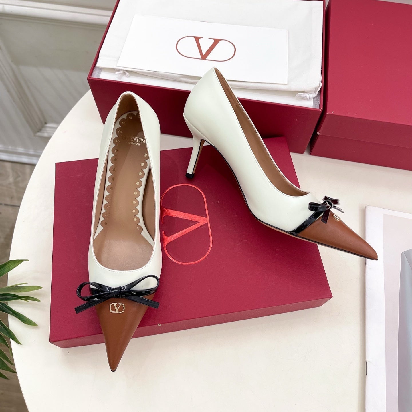 VT 25 Bepointy Pump 8cm White Brown Lambskin 325524