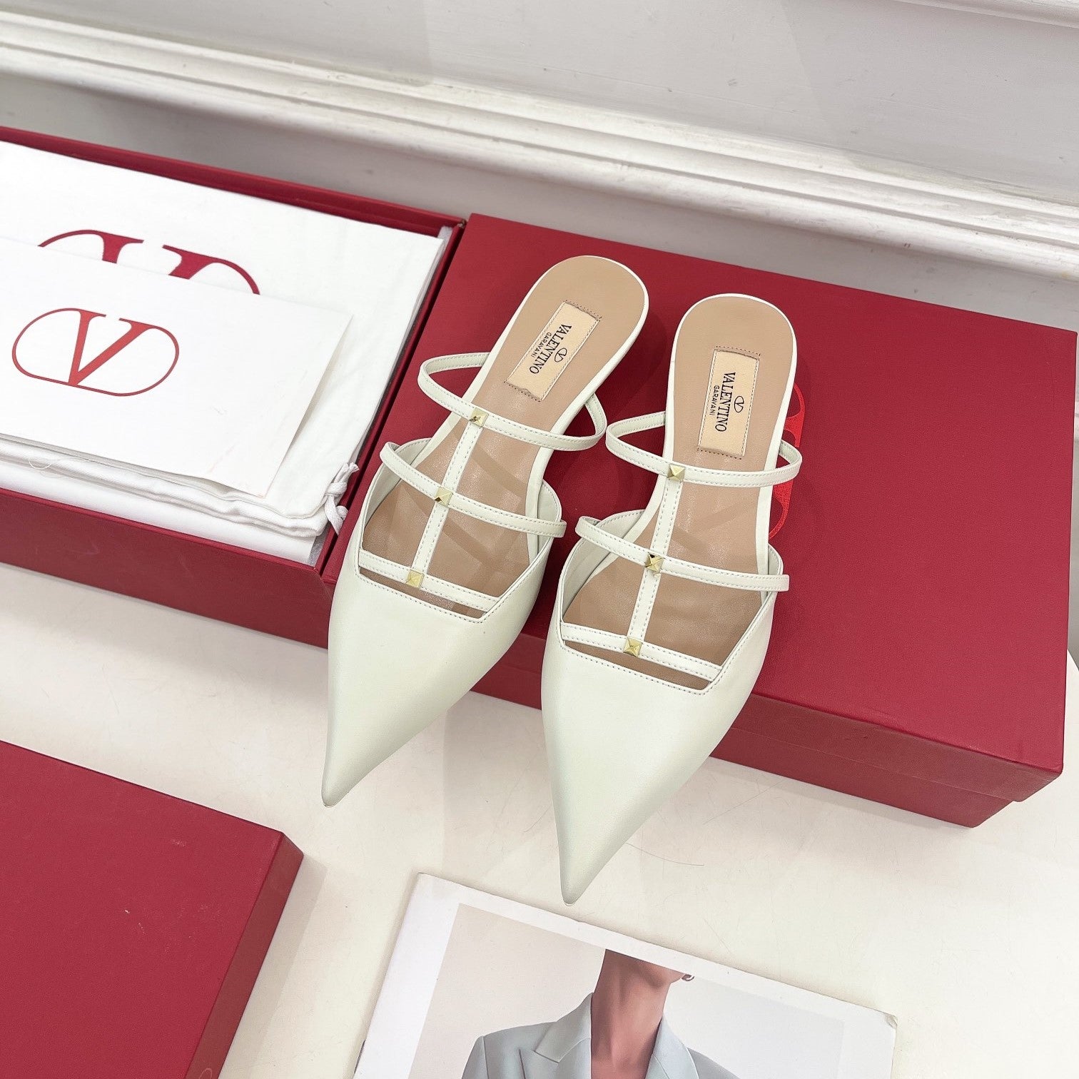 Rockstud Wispy Beige Calfskin Mule 20mm