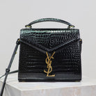 CASSANDRA MINI TOP HANDLE BAG 20 IN BLACK CROCODILE-EMBOSSED GLOSSY CALFSKIN