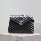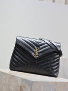 LOULOU LARGE 36 IN BLACK QUILTED CALFSKIN GOLD HARDWARE