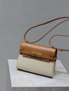 MANHATTAN MINI 19 IN WHITE CANVAS AND BROWN LAMBSKIN GOLD BUCKLE