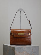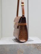 MANHATTAN SMALL 24 IN BROWN CROCODILE PATTERN CALFSKIN GOLD BUCKLE
