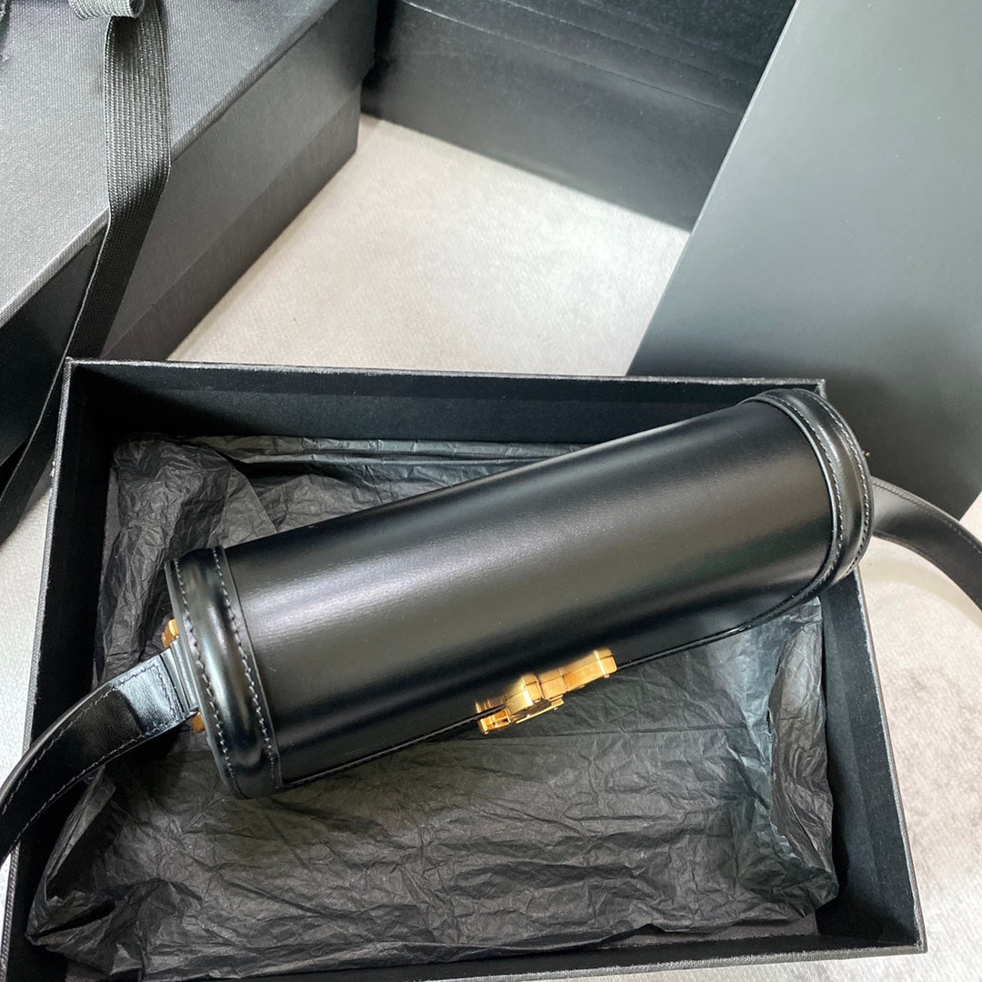 SOLFERINO SMALL SATCHEL 19 IN BLACK CALFSKIN GOLD LOGO