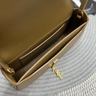 VOLTAIRE IN BOX 21 IN CARAMEL BROWN CALFSKIN GOLD LOGO