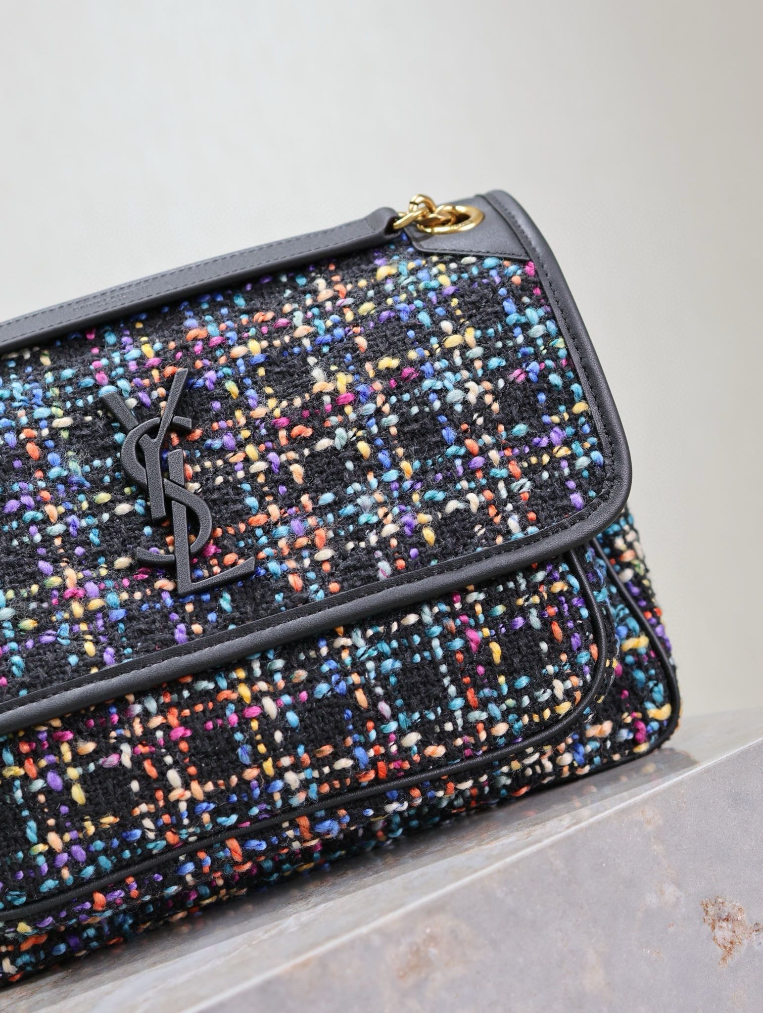YSL Niki Medium 28cm Tweed Bag Gold Hardware