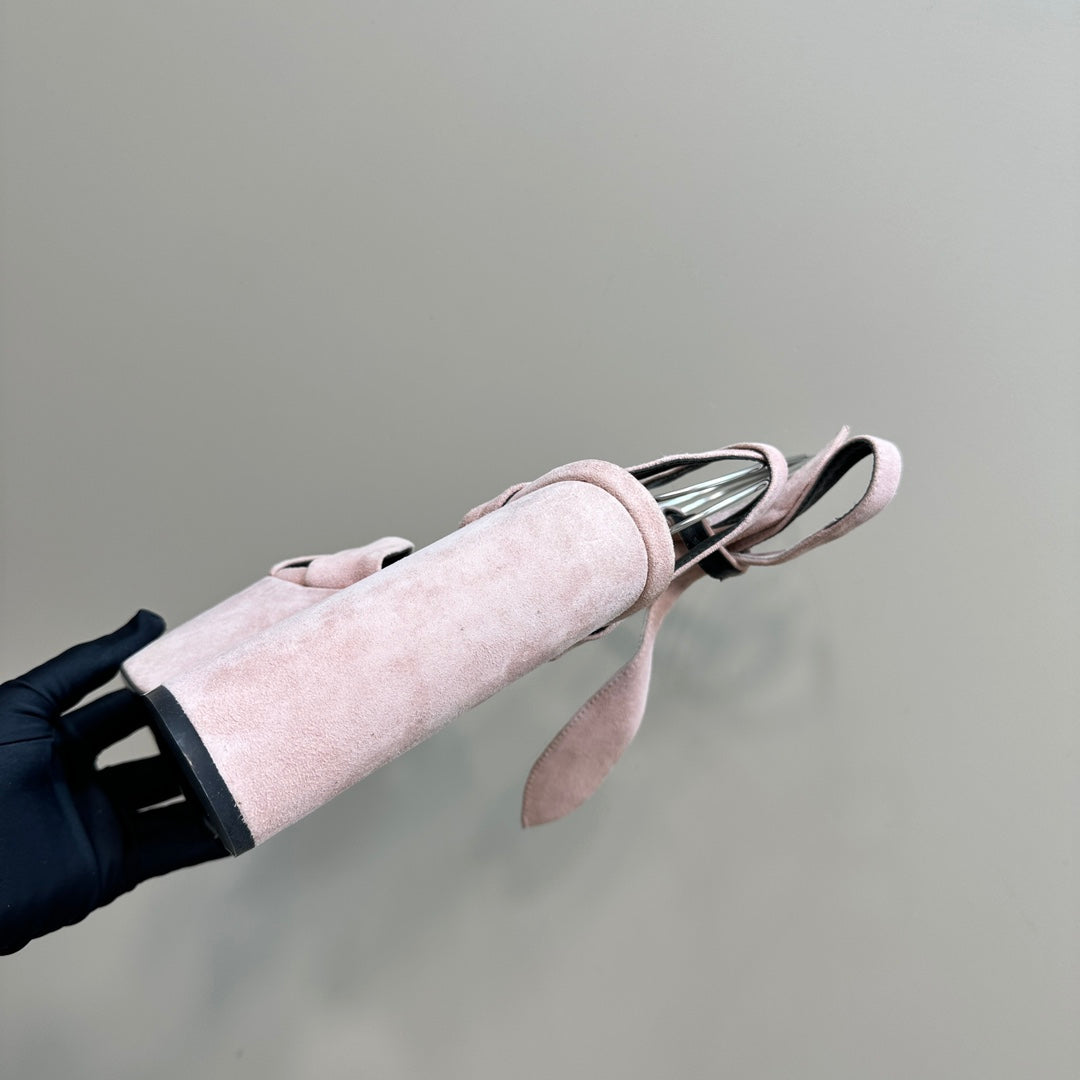 HIGH CRYSTAL STRAP SANDALS IN LIGHT PINK SILK