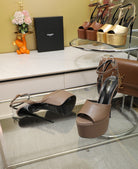 SL SUPER HIGH HEELS SANDAL ASH BROWN CALFSKIN