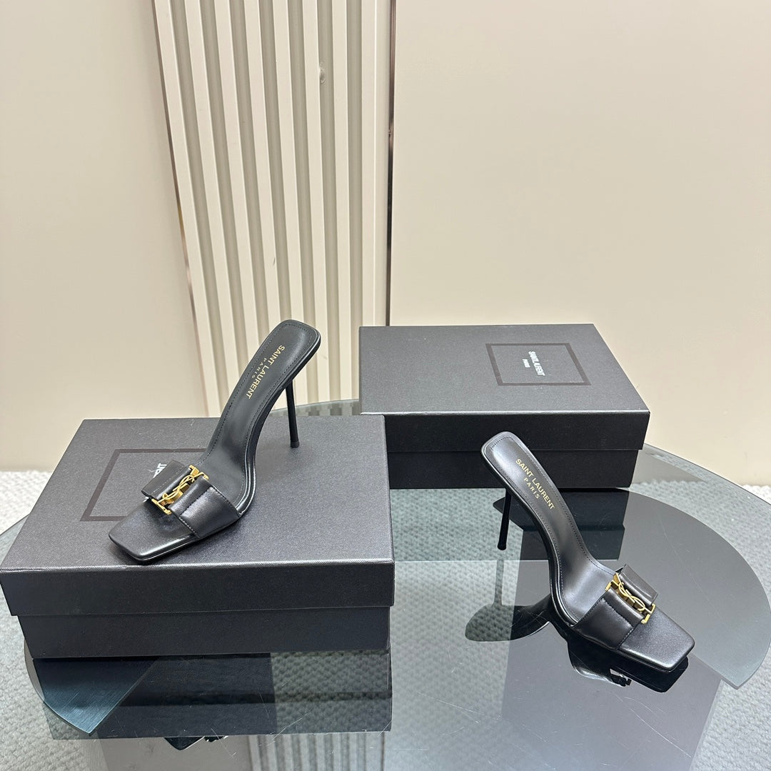 SL GOLDIE MULES BLACK CALFSKIN