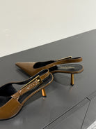 LEE SLINGBACK MID PUMPS IN BARK BROWN SHINY CALFSKIN