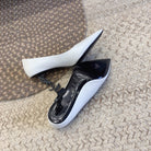 OPYUM BLACK HEEL PUMPS IN WHITE SMOOTH LAMBSKIN