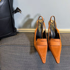 POINTED-TOE SLINGBACK PUMPS IN TANGELO ORANGE SILK