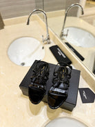 SL CASSANDRA FLAT SANDALS BLACK POLISHED CALFSKIN