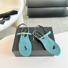 SL CRYSTAL T-STRAP FLAT SANDAL SAPPHIRE SATIN
